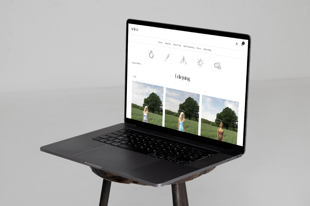 Vi skabte et visuelt univers for Soléa, der bygger på et feminint og eksklusivt udtryk med rene linjer og dæmpede farver. Identiteten skulle afspejle elegance, tryghed og kvalitet – værdier, der understøtter oplevelsen af en moderne platform for kjoleudlejning.